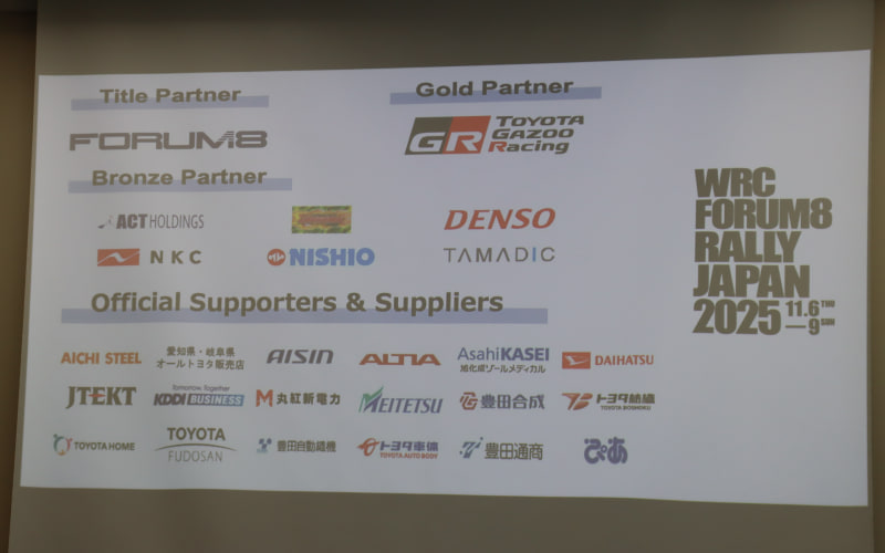 ラリージャパン2025実行委員会は7月17日、愛知県の豊田市、岡崎市、新城市、設楽町、岐阜県の恵那市、中津川市を舞台として11月6日~9日の期間に行なわれるWRC(世界ラリー選手権)第13戦「FIA 世界ラリー選手権 フォーラムエイト・ラリージャパン2025」の大会概要を発表した。