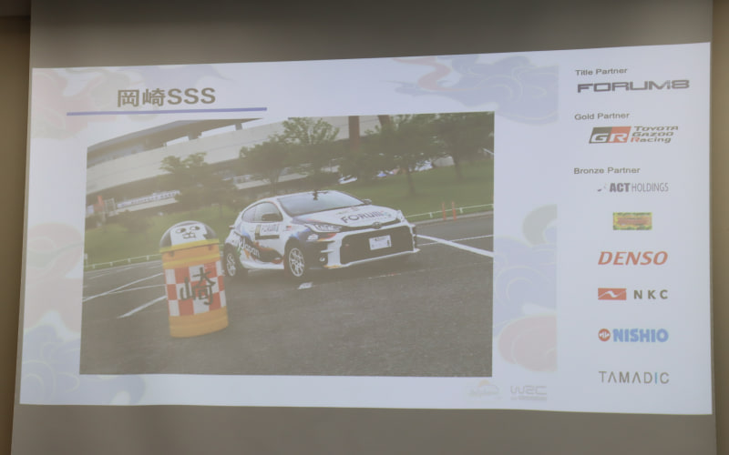 続いて登壇した高桑競技長からは、2025年大会のコース概要について説明された。これまでと同じく愛知県と岐阜県の5市1町で行なわれる大会では、4日間の競技でSS(スペシャルステージ)は20か所を設定して、16か所に観戦エリアを用意する。従来から全体の約25%について変更を行なう計画で、現時点ですでに95%が固まっており、これからも細かな部分についての微調整を続けていくという。また、前回大会で競技中のコースに一般車両が進入する大きなトラブルが発生したことを運営側としても重く受け止め、一般車両が入りにくいような形で安全対策に万全を期すコース設定を進めていると述べた。