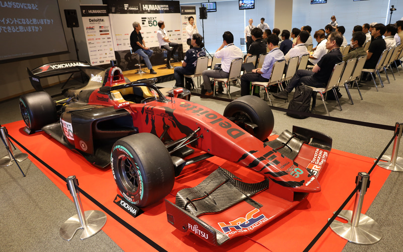 自動車産業界とのビジネス交流会「技術セッション」では、「A2RL 自動運転フォーミュラレースへの挑戦」と題してTGMGPチーム代表の池田和広⽒、「宇宙開発を支えるモータースポーツの技術」と題して実業家の堀江貴⽂⽒、「AIを超えた人工自我搭載フォーミュラマシン」と題して東京大学医学部 客員研究員の光吉俊二⽒が登壇する基調講演が実施された。