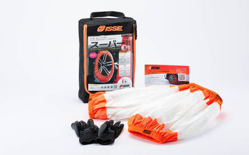 イッセ・スノーソックス スベーネの最大の特徴は、かぶせるだけという装着の手軽さ。工具不要で力もいらないため、急な降雪時に短時間でサッと取り付けられる。また、軽量で柔らかな素材は扱いやすく、コンパクトに折りたたむことができるため、車内常備にも最適。車体やホイールを傷つける心配も少なく、走行音も静かで、快適で安全な冬のドライブをサポートする。