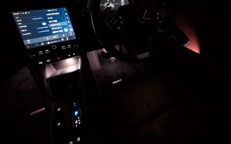 レクサス「NX」は2024年3月のマイチェンで、“version L”“F SPORT”“OVERTRAIL”グレードは、足下照明、フロントトレイイルミネーション、ドアトリムイルミネーション(4席)、フロント&リアドアハンドルランプに高輝度LEDを内蔵し、美しい自然現象などから着想を得た14色のテーマカラーのほか、好みに合わせて選べる50色のカスタムカラーを搭載する「マルチカラーイルミネーション」を備えている。