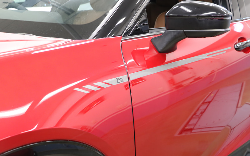 「プレミアムシフトノブ(70thロゴ入り)」は、運転席に上質なきらめきをもたらす、記念ロゴを刻んだシフトノブ。「プロジェクションカーテシイルミ(THE 70thロゴ入り/フロントドア左右)」は、ドアを開くたびに足下を照らし、記念ロゴの光が特別な乗降体験を演出してくれる。「サイドデカール(70thロゴ入り)」は、70周年記念ロゴ入りのシャープなラインで、エクステリアにさらなる特別感を与えてくれる。
