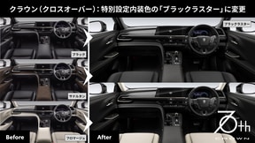 なお、インテリアカラーカスタマイズは、70周年記念特別仕様車の色「ブラックラスター」以外も選択可能で、その場合の価格は26万6200円。UPGRADE SELECTIONS by KINTO FACTORYでしか選択できないインテリアカラーの組み合わせも可能となっている。ただし、元車両の内装色によって選べる色が異なるので、詳細はWebサイトで確認していただきたい。