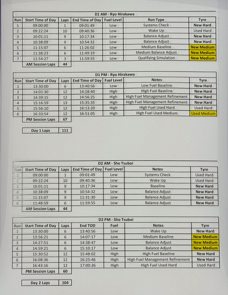 6日の走行では、平川選手が富士スピードウェイを条件を変更しつつ111周。テストに用いられるVF-23のガソリンの重量や、タイヤ、走り方など、チームのランプランに従ってタイムを刻んだ。