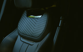 夜に近づく夕空と煌めく街の灯りを表現するために、シルバーに淡いピンクの暖色をかけ合わせたBESPOKEシルキーロゼサテンを採用。インテリアは鮮やかなペルリーノのレザーに同系色の刺繍、クロームやホワイトセラミックなどをちりばめ、エクステリアの軽やかな雰囲気と統一感を持たせている。