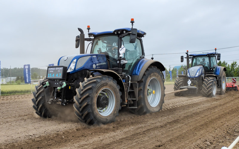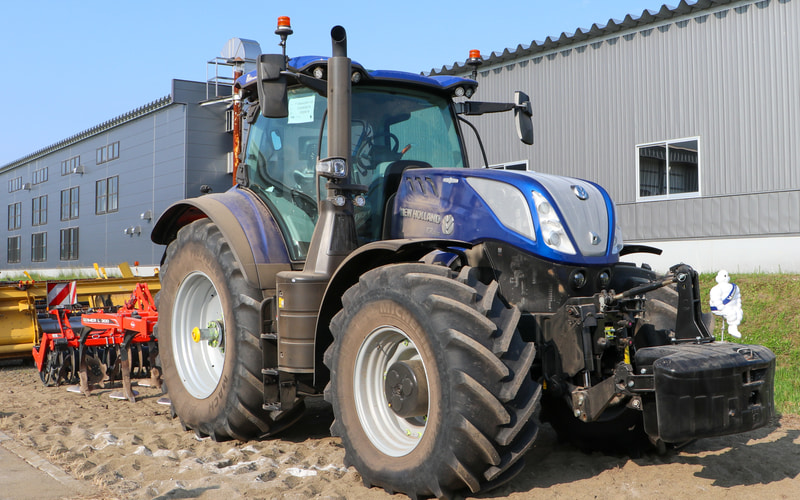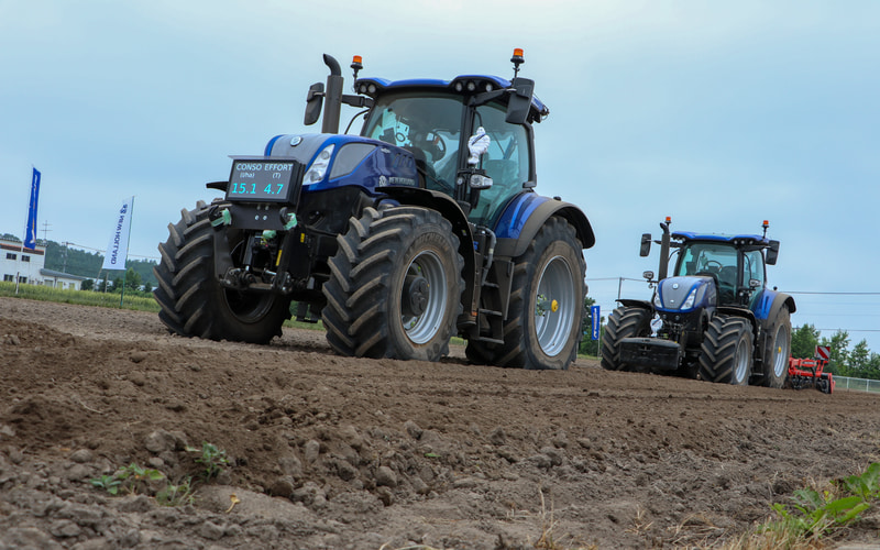 使用したトラクターは、ニューホランドの「T7.300」。ボディサイズは5165×2760×3390mm(全長×全幅×全高)。ホイールベースは2885mm。パワートレーンは直列6気筒6.7リッターディーゼルエンジンを搭載。タイヤサイズはフロント600/70R30、リア710/70R42。重量は11.67t(フロント車軸3.6t、リア軸重8.07t)。リアヒッチ最大揚力は1万587kgfを誇る。