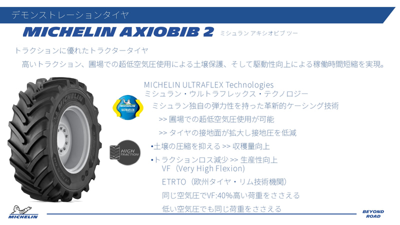 日本ミシュランタイヤは、北海道美幌町にある日本ニューホランドにあるテスト圃場(農作物を育てる場所)にて、アジア初開催となる農機用タイヤのデモンストレーションイベントを実施した。