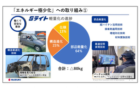 なお、質疑応答ではSライトプロジェクトで軽量化を行なう中で、過去の「アルト」を研究していた際の発見として、過去のアルトのサイズでも十分な広さを感じられることが再認識されたといい、二輪、四輪、マリンの部門を超えたアイデア出しや、NVH(騒音・振動・ハーシュネス)対策の技術進化によって、ノイズパッドなどの不要な部品を削減することによって、100kgではなく120kgの軽量化が可能ではないかという期待が鈴木社長から述べられた。