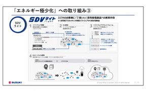 バッテリリーンなBEV/HEVについては、新型「eビターラ」やインドで発表した「e-ACCESS」を例として挙げ、eビターラにはSDVライトの考え方を適用していると紹介。