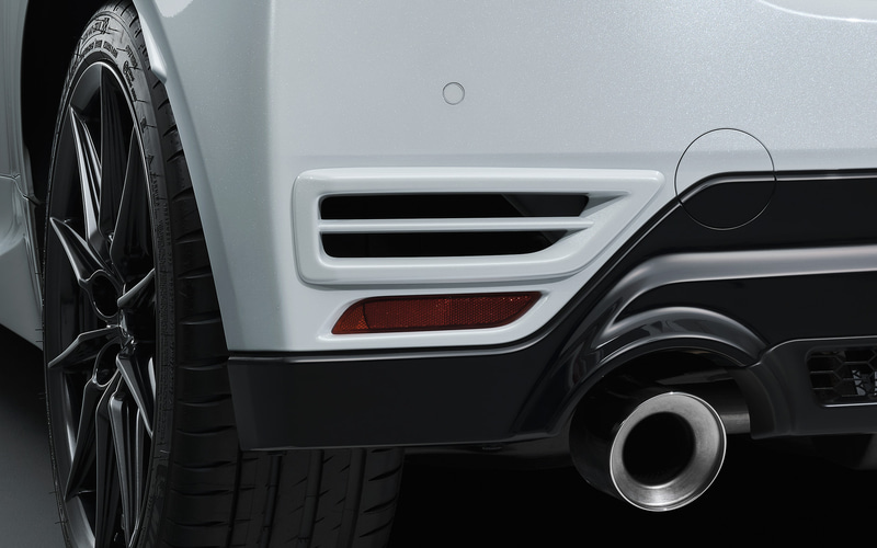 「リヤバンパーダクト」は、リヤバンパーにおけるパラシュート効果(車両前方からの走行風をリヤバンパーが受け止めることで空気の滞留を招き、抵抗となる現象)を抑制し、Cd値を低減。スーパー耐久シリーズで空力負荷によりリヤバンパーが外れたことを起点に、モータースポーツ特有の厳しい環境に対応するため開発されたものとなる。