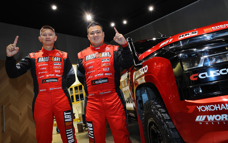 今回タイから来日したドライバーのチャヤポン選手は、WRCやダカールラリーなど世界で戦う三菱に小さい頃から憧れていたそうで、「チーム三菱ラリーアート」の一員としてステアリングを託され、優勝できたことがとても嬉しいと語った。ちなみにこの勝利に向け1年間で20kgの減量をしたそうで、約30kg軽量化されたマシンと合わせて50kgの軽量化を達成したこととなる。