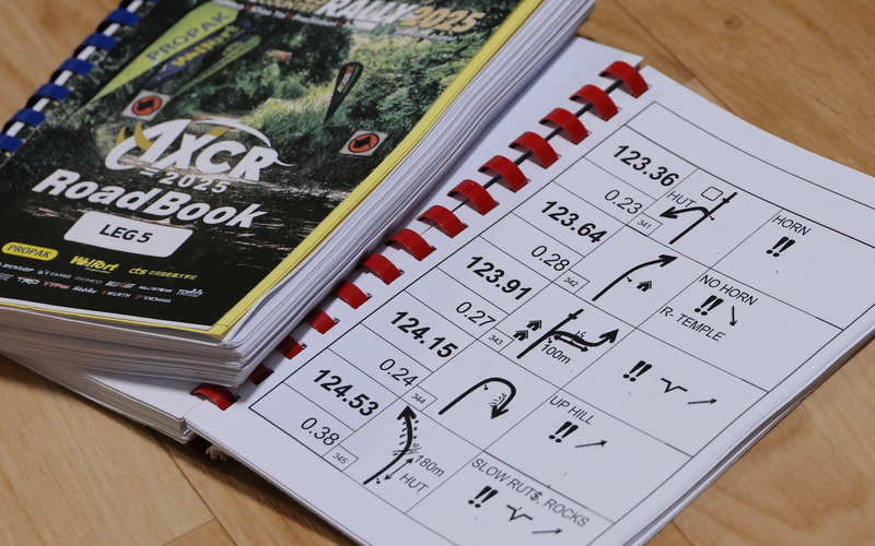 毎日手渡されるルートブックも100ページ以上あり、各チームのコ・ドライバーは1日の走行を終え疲れた体で、毎晩全てのページを研究・検証し翌日の走行に備えるという。ドライバーがペースを上げてタイムを削っても、一度のミスコースによるロスタイムはそれを大きく上回ってしまうことが多いクロスカントリーラリーにおいて、コ・ドライバーの重要性は極めて大きい。