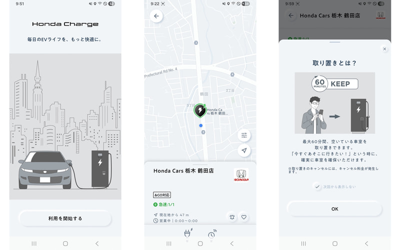 さらに、ホンダ仕様のインターフェースで充電に関する一連の体験をサポートする専用スマホアプリ「ホンダチャージ」の提供も開始。アプリで充電器の検索から予約ができ、充電までの不安やストレスを軽減し、計画的な充電プランを立てられるだけでなく、決済まで一括で管理でき、シームレスな充電体験を提供してくれる。