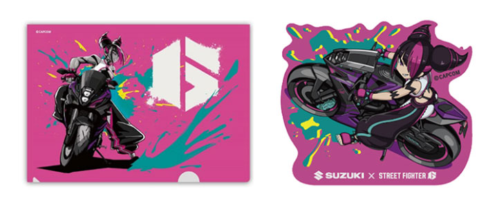 配布ノベルティ:バイクにまたがった人にはオリジナルコラボクリアファイルとステッカーを、ブース来場者にはジュリの音声付きデジタルステッカーをプレゼント。