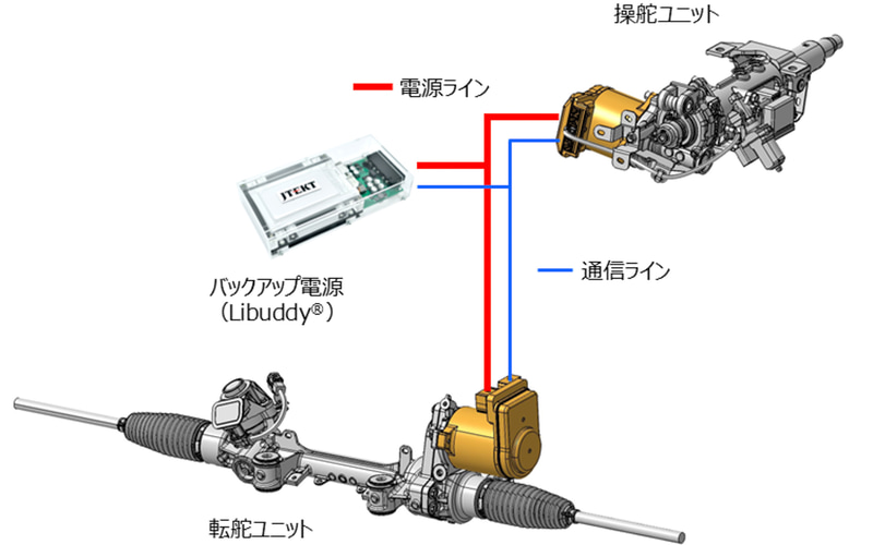 バックアップ電源の「Libuddy」は、万が一、車両電源トラブルが発生した際、路肩に寄せるなど安全な位置まで車両を操作できる電力を供給し、車両、運転手、同乗者、周囲の環境への安全性向上に寄与するもの。