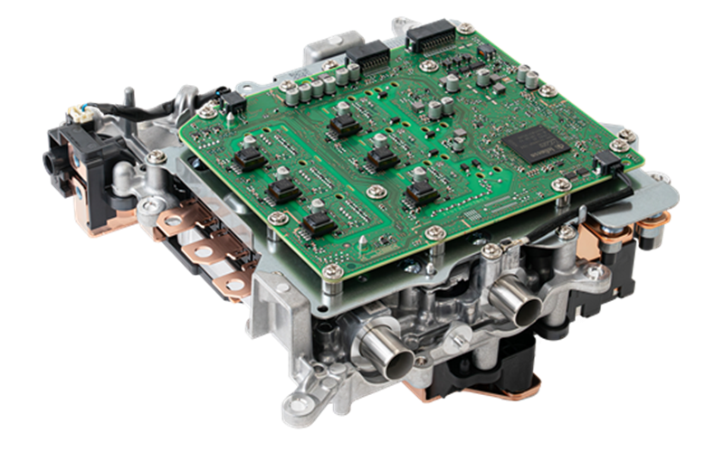 BEVやPHEVの心臓部ともいえるインバータは、動力源であるモーターを駆動するために、電池からの直流電流を交流電流へ変換する重要な役割を担うパーツ。航続距離の延伸と走行性能の向上を両立させ、さらに車室内空間確保のための自由な搭載ニーズに応えるため、インバータは体格を抑えつつ、電力損失や発熱を抑制し、大電流に対応する性能が求められる。
