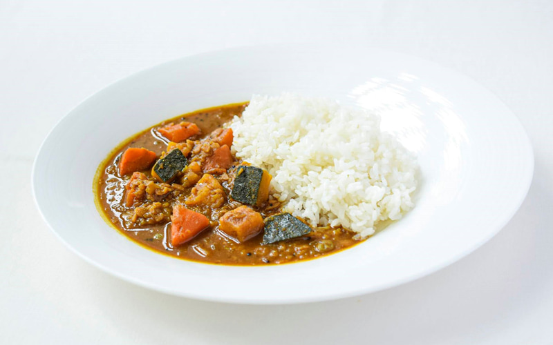 新味の南瓜サンバルは、トゥール豆とかぼちゃをベースにした南インドの煮込み料理で、かぼちゃの自然な甘みとほくほく感、タマリンドの酸味が重なり、奥行きのある味わいが楽しめるという。