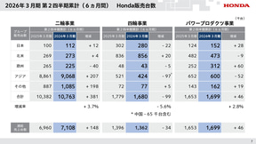ホンダ、2026年3月期第2四半期決算の営業利益4381億円、中間利益3118億円