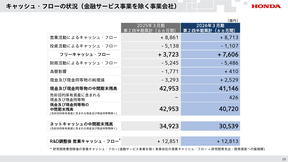 前年同期に比べ3310億円減益の730億円の赤字となった四輪事業について、同取締役 執行役常務 藤村英司氏は「販売影響は、グループ会社再編に伴う損失の計上などにより245億円の減益、売価およびコスト影響は価格改定の効果などにより、1300億円の増益、諸経費は338億円の増益、研究開発費は244億円の減益、為替影響は640億円の減益、またEV一過性費用により2237億円の減益、関税影響は1581億円の減益となりました」と、その増減要因について説明。価格改定の効果などはあったものの、EV一過性費用や関税影響などにより、大幅に減益となったことを報告した。