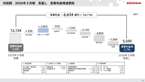2026年3月期通期見通しで示した営業利益5500億円は、前年実績に比べ6634億円の減益となっている。