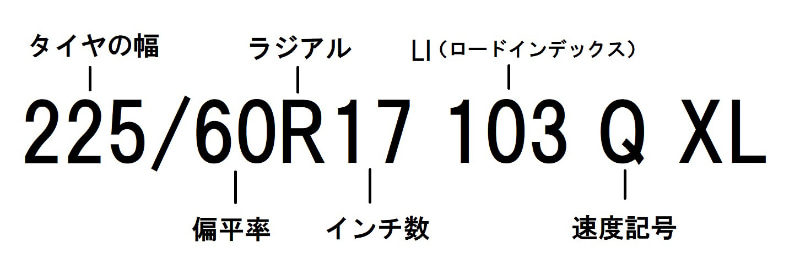 タイヤサイズはタイヤの側面にも表記されているので目にする機会も多いはず。左側からタイヤの幅、偏平率、インチ数などが書かれているが、後半のLI(ロードインデックス)や速度記号も重要なので確認しておきたいポイントだ。