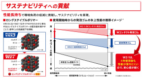 このほか、Wコンタクト発泡ゴムでは柔らかさを長期間持続させる「ロングステイブルポリマー」を増量して、4年使用後でもブリザック VRX3の新品時を超えるゴム性能を維持。タイヤを長く安全に使い続けられるようにしてサステナビリティに貢献している。