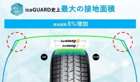 氷上性能を革新的に高めることを目指した冬用タイヤの新技術コンセプト「冬テック」を採用する第1弾となり、ミクロレベルで氷とゴムの接触点を最大化する「接触の密度」と、マクロレベルで路面とタイヤの接触面を最大化する「接触の面積」の2つの視点で最大化を図り、従来品の「アイスガード 7」と比較して氷上における制動距離を14%短縮している。