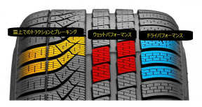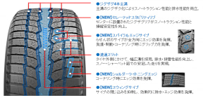 これらの技術によって雪上性能とウェット性能を両立させるとともに、ドライ性能や耐摩耗性能を確保。国際基準で定められたシビアスノータイヤ条件に適合していることを示す「スノーフレークマーク」がサイドウォールに打刻され、チェーン規制時でも走行可能なタイヤとして認められている。