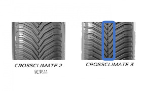 クロスクライメート 3同様にトレッドパターンで「Vシェイプ テクノロジー」「ピアノ アコースティック チューニング テクノロジー」を採用してスノーグリップ性能の向上、不快な周波数帯の音の効果的な削減などを図っているほか、新開発されたオールシーズン専用トレッドコンパウンド「サーマル アダプティブ コンパウンド 2.0」を導入。優れた雪上性能に加えて高いドライ&ウェットグリップを実現している。
