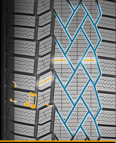 3Dサイプを備えるアダプティブトレッドテクノロジーを前モデルから継承しつつ、タイヤの寿命を通じて雪上でのグリップ力を向上させるべく改良を実施。タイヤが摩耗するとサイプ形状が直線からジグザグパターンに変化し、溝の深さが減っても雪を捉える表面積を増加させて対応する。サイプはタイヤを通じて伝わるエネルギー量に応じて開閉し、必要に応じて冬用タイヤの形態から、より硬くコンパクトな夏用タイヤのパターンに変化するため、ブレーキ性能、ロードホールディング性能、ドライビング精度が向上。従来品と比較してより広くなった溝と鋭角な方向性トレッドパターン設計は雪上性能を向上させるほか、雨天時の排水にも寄与してハイドロプレーニングのリスクを軽減させる。