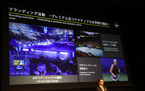 今回の「ONE DUNLOP」「TAKING YOU BEYOND」など企業の大きな方針の発表会に合わせて、欧州や北米のダンロップブランド事業主が来日。プレゼンテーションを行なった。