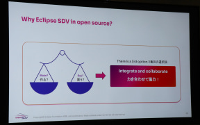 今回の来日中にはJasPar参加企業のメンバーとも話す機会があり、JasParでもオープンソースの取り組みを進めていると語られたが、Eclipse SDVとしてもほかの団体と対立するような考えはなく、そもそもオープンソースは門戸を広く開いてコラボレーションを促進していくことが重視されている。