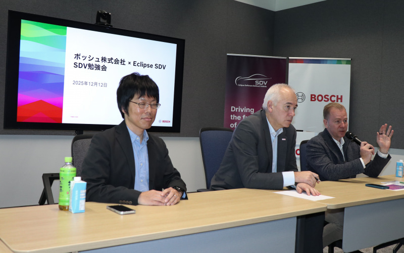 ボッシュは12月12日、業界の壁を越えたコラボレーションが鍵となるSDV(ソフトウェアデファインドビークル)の実現に向けた各種取り組みや最新情報について、オープンソースソフトウェア関連のプロジェクトを運営する団体であるEclipse SDVの担当者も招いて解説する報道関係者向けの「SDV勉強会」を開催した。