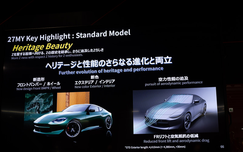 2022年にデビューしたRZ34は2026年夏にマイナーチェンジが予定されている。今回のマイナーチェンジではZの歴史を継承しつつ、Zらしさを進化・洗練することを目指したものとなる。また、パフォーマンス面でも歴代最高とすることを目指して開発しているという。