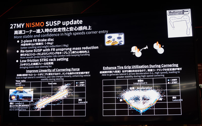 両社は東京オートサロン2026に先がけて、コンセプトモデルの「AURA NISMO RS Concept」と、2026年夏にマイナーチェンジするフェアレディZをベースとした「フェアレディZ NISMO」の説明会を神奈川県にあるNISMOショールームにて開催。AURA NISMO RS Conceptについては別記事で紹介、本稿ではマイナーチェンジ版のフェアレディZとフェアレディZ NISMOを紹介していく。