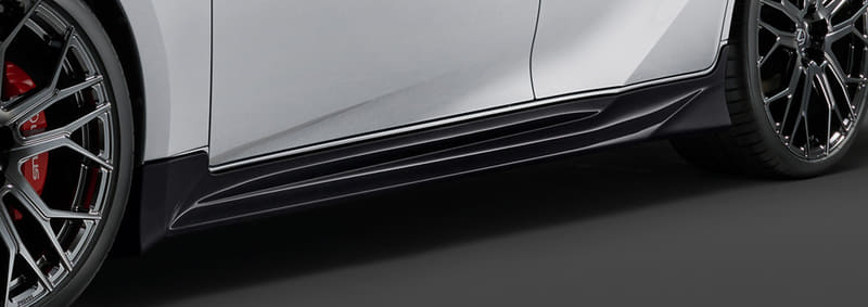 サイドスカートは、見る角度によって印象を変える彫りの深いスポーティなデザインを開発。前方下端に新機構の造形を持ち、タイヤハウス内の乱れた空気を効果的に排出することで静粛性にも寄与し、フロントの浮き上がりを低減。また、車両後方に綺麗に風を流し、ディフューザー効果をさらに高めるという。