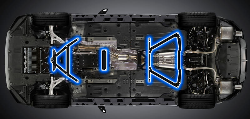 また、走行時におけるノイズ・振動を効果的に減衰させる事により、上質な走りと操縦安定性や快適性の向上など効果をもたらす「パフォーマンスダンパー」も新たに設定したほか、ボディフロア全体を前から後ろまでバランスよく補強することで、サスペンションがより効果的に路面からの入力を受け止め、しなやかな乗り心地と安定したロードホールディング性能に寄与する「メンバーブレース」も新たに追加設定した。