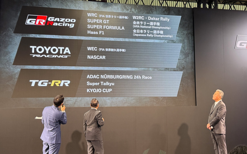1月9日から始まった東京オートサロン2026で行なわれたTOYOTA GAZOO Racingのプレスカンファレンスでは、TOYOTA GAZOO RacingからGAZOO Racing、TOYOTA RACING、TG-RRへと変更される活動の一覧が示された。