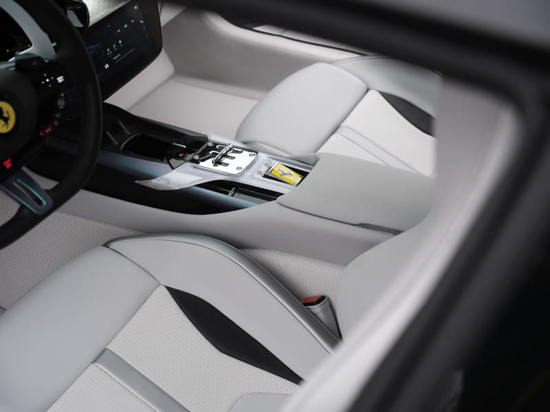 インテリアは、織物の職人技とファイバーアートで国際的に高い評価を得ており、2022年のロエベ財団のクラフト・プライズを受賞した韓国人アーティストのDahye Jeong氏が手がけた。シート、フロア、ソフトサーフェスの素材には、韓国企業が新開発した3Dファブリックをフェラーリとして初採用している。