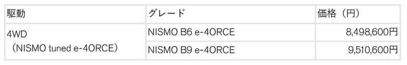 - NISMO B9 e-4ORCE:951万600円