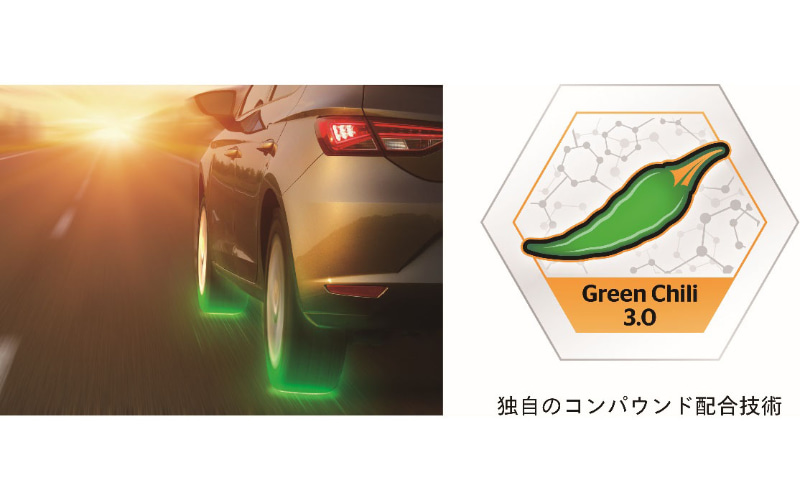 そのほか新世代のコンパウンド・テクノロジー「グリーン・チリ 3.0」を採用。独自の添加剤により柔軟性を高め、多様な路面に適応して変形と発熱を抑制。転がり抵抗性能が向上し、低燃費とCO2排出量の低減を実現した。同時にウェットグリップ性能を高め、ハンドリング精度が向上することによって操る楽しさも追求。ゴムの摩耗を抑えることでロングライフにも貢献するとしている。