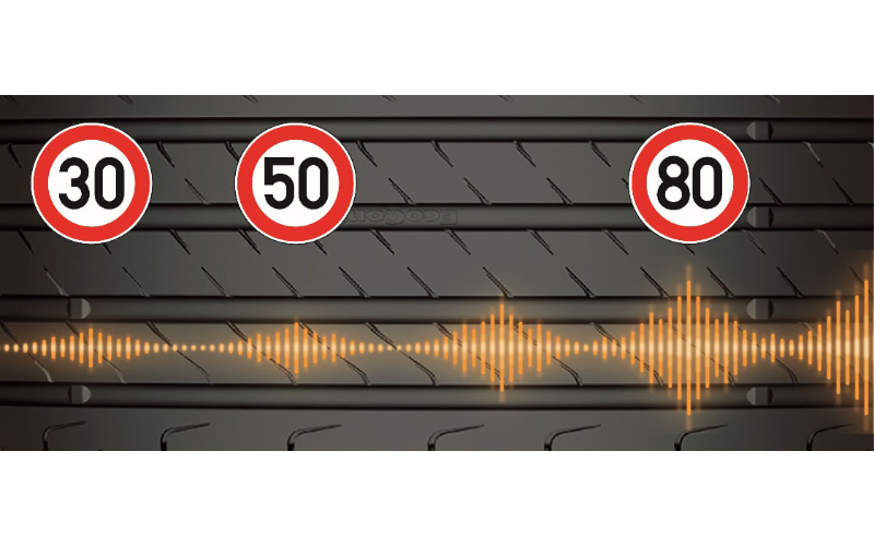 さらにタイヤのトレッドブロック間の隙間を抑え、接地面の切り込み(サイプ)の角度も工夫することで走行時に発生するノイズを最小限に抑制。専用のピッチ配列は、特に街乗り(約50km/h)で発生しやすい周波数帯のノイズを最適化するとのこと。