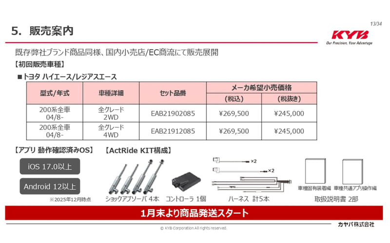 カヤバ(KYB)は1月29日、東京オートサロン2026で発表&発売を開始したアフターマーケット向けとしてはカヤバ初となる電子制御サスペンションシステム「ActRide(アクトライド)」の説明会を実施した。