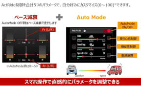 またアクトライドには、減衰力を自動的に制御してくれる「オートモード」も搭載していて、6軸IMUセンサーからの情報を活用し、乗り心地、操縦性、車速連動の制御をすべて自動で行ない快適な乗り心地を提供してくれるという。