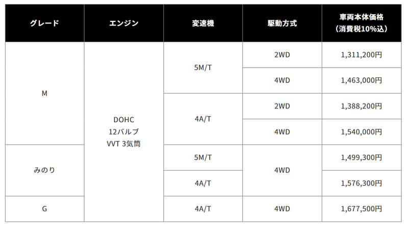 さらに、ぬかるみ脱出アシストを「みのり」の5M/Tにも新たに採用し、デフロック機構 との組み合わせで雪道やぬかるみなどでタイヤが空転した際に、駆動力を最適に制御し、スムーズな発進をサポートするとしている。
