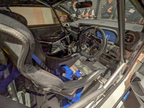 カラーリングは、兼松選手が大好きというファッション“ゴスロリ(ゴシック・アンド・ロリータ)”と、WRCを走るGRヤリスラリーカーのカラーリングをモチーフにラッピング業者に依頼したそうで、ポイントはボンネットやサイドに入っているチェック柄とのこと。