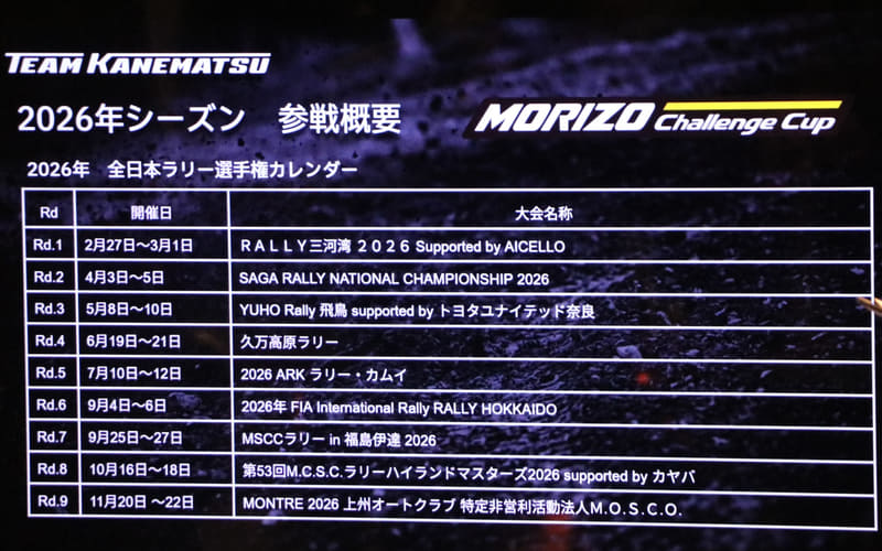 これから幕を開ける2026年シーズンは、ルール改定でJN-2からJN-3クラスのサブカテゴリーと変更になったが、2025年と同様に全日本ラリー選手権 MORIZO Challenge Cupへ全9戦中7戦に参戦する予定と発表した。