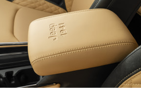 インテリアには、限定車専用色の「テュペロブラウン」と「ブラック」のスタイリッシュなコントラストが上質な空間を演出。センターコンソールにはジープ誕生の年 “1941” を刻み、ブランド85周年に通じるディテールを取り入れた。