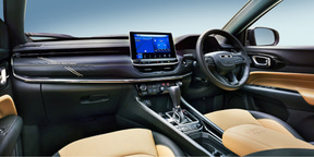 「コンパス トラックエディション」では、ブラックペイントルーフを採用することで、精悍でスタイリッシュな印象をさらに強調。また、フロントシートにはベンチレーション機能を搭載し、季節を問わず快適なドライビング環境を提供します。ボディカラーは、「パールホワイトトライコート」を設定した。