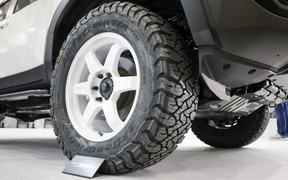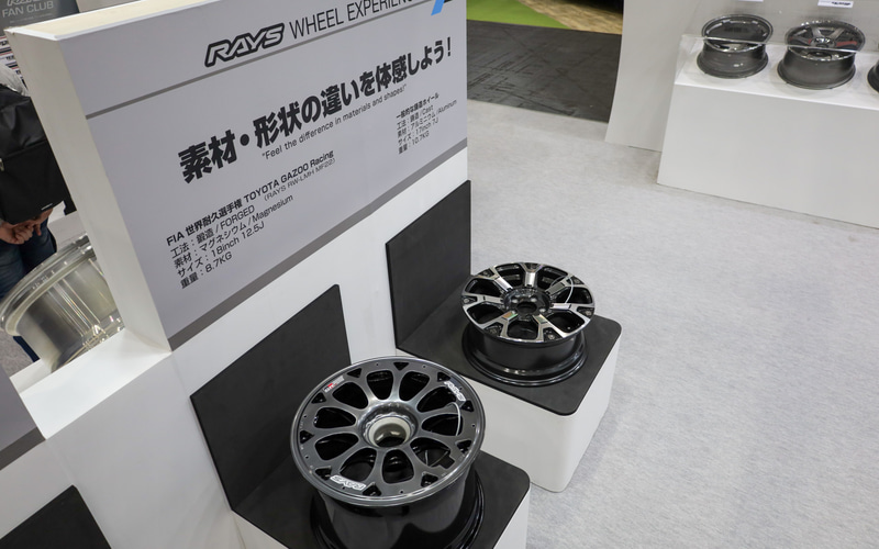 レイズブースでは1996年の「TE37」登場から30年という節目を迎えるにあたり、30年の歴史を振り返る展示や「TE37」30周年記念モデルを展示。ホンダの「シビックTYPE R」やトヨタの「ランドクルーザー」といった車両への装着事例を示している。